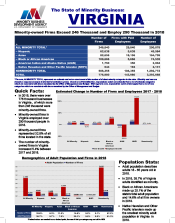 • In 2018, there were over 776 thousand businesses in Virginia , of which more than 246 thousand were minority-owned firms.